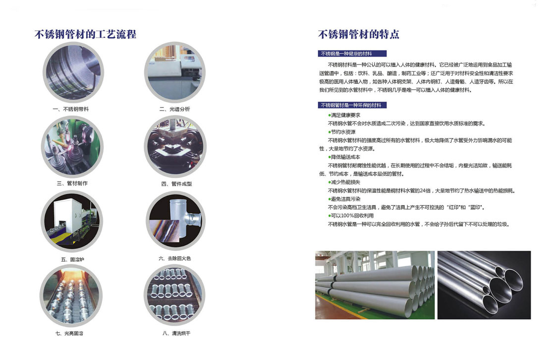 Өндөр чанарын зэвэрдэггүй ган нерж хоолой: ундны ус, халаалт, халуун ус, уур, хий, нарны систем, далайн ус болон эмнэлгийн системд тохиромжтой. Эрүүл ахуй, бат бөх, зэврэлтэд тэсвэртэй, удаан эдэлгээтэй, байгальд ээлтэй.