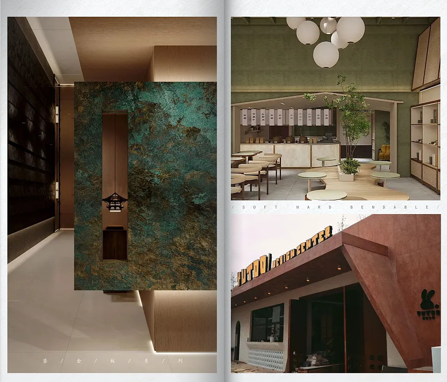 Худалдааны орчин: Энэхүү төрлийн интерьерийн хавтан тансаг зочид буудал, клуб, борлуулалтын төв, виллагийн загварын өрөө зэрэгт дэвсгэр хана, үүдний чимэглэл болгон ашиглаж тансаг уур амьсгал бүрдүүлнэ‌.